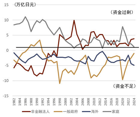 注:正值为该主体资金过剩、负值为该主体资金不足资料来源:日本央行,日本内阁府,中金公司研究部
