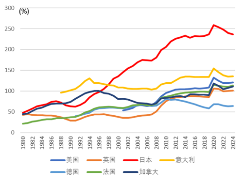 注:1) 政府债务范围为中央政府、地方政府、社会保障基金的合计;2) 2024-2025年的数值为IMF的推测值